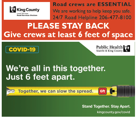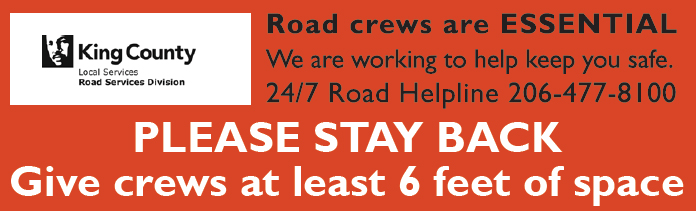 Road Services is continuing to do its part to help reduce the spread of #COVID19, while actively protecting the health and safety of our workers and keeping our roads and bridges in unincorporated King County safe and usable.