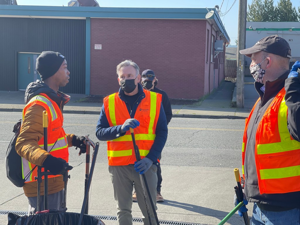 9. County expands Conservation Corps program: As part of his $40-million King County Jobs program, Constantine announced an expansion of the Conservation Corps program. In March, Local Services Director John Taylor and team members joined the Executive during a ceremony in White Center. He spoke about how Conservation Corps – which began in December 2019 as a pilot program with the Millionair Club (now Uplift Northwest) – has provided meaningful employment for people experiencing homelessness. It also resulted in thousands of pieces of trash, needles and other litter off the public areas of urban unincorporated areas of White Center, Skyway and Fall City. Work is underway to have the program up and running in February, 2022.