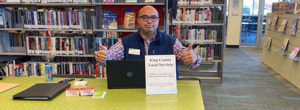 Residents of unincorporated King County can attend a regularly scheduled community office hours session in their communities and get help with anything related to their local government. Help topics include everything from questions about Permitting and MyBuildingPermit.com, to Roads’ maintenance requests and questions about traffic safety, to Community Service Area programs and anything else related to Local Services. And if residents have questions that involve other King County departments, staff will work to connect them with the proper contact.
