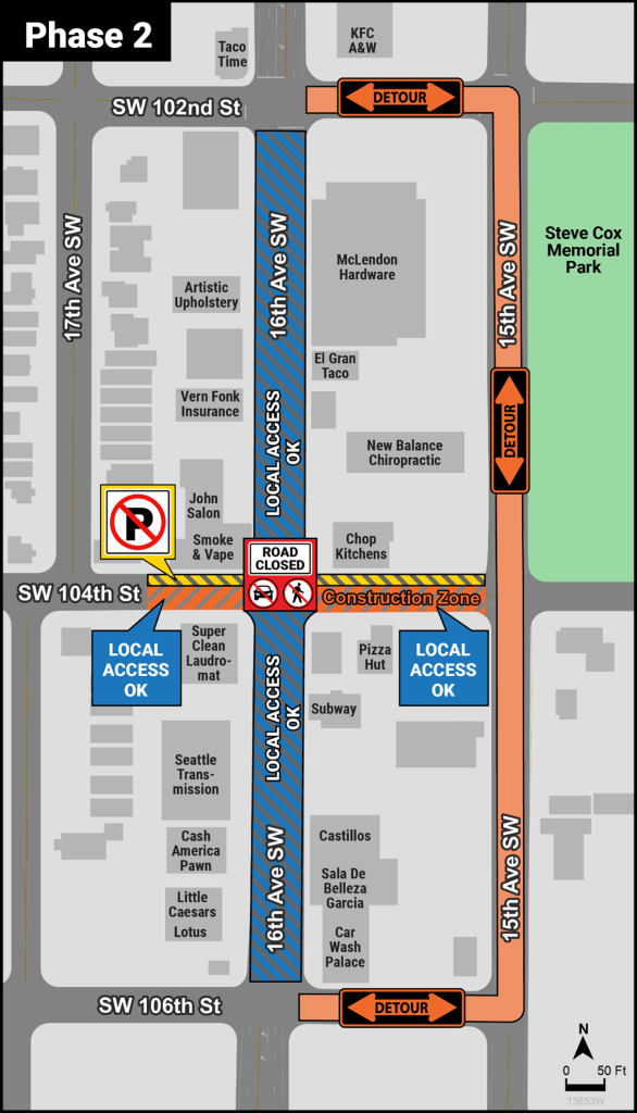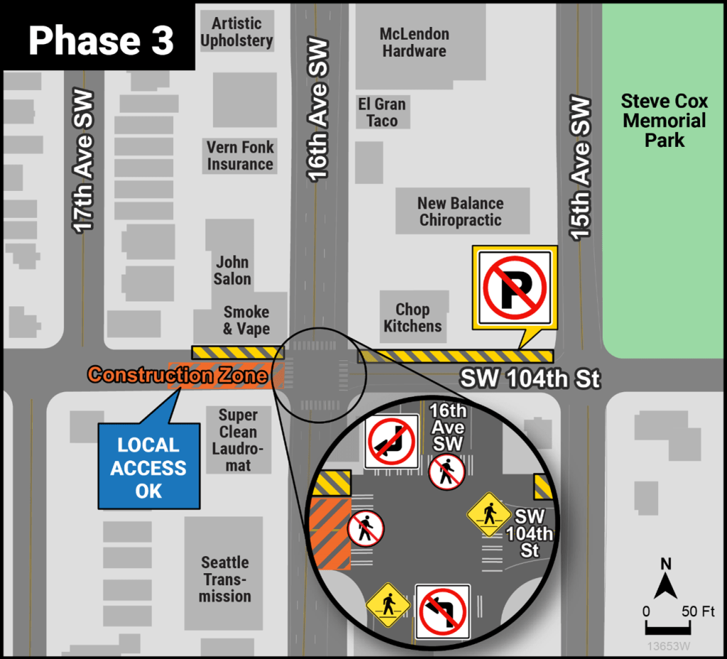 Phase 2: March 11 – April 1 – Intersection Closure at 16th Avenue SW & SW 104th Street